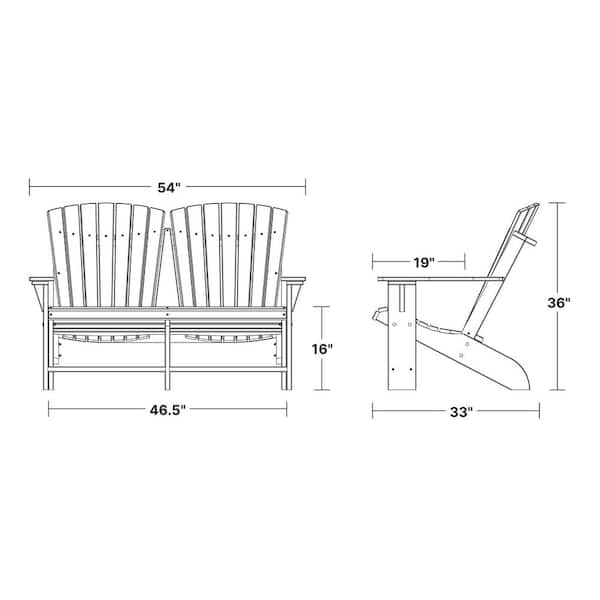 Heritage Weathered Wood and Black HDPE Plastic Outdoor Double Adirondack