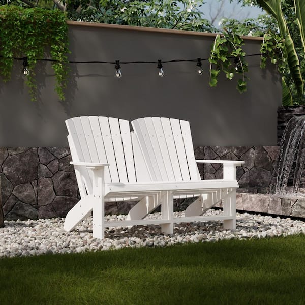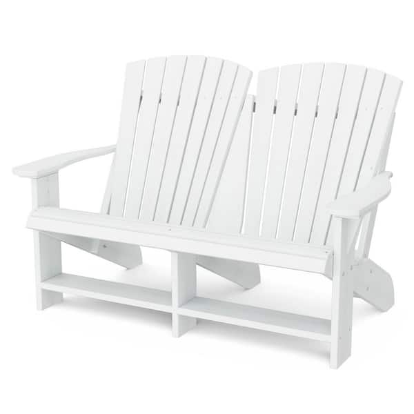 Heritage White HDPE Plastic Outdoor Double Adirondack