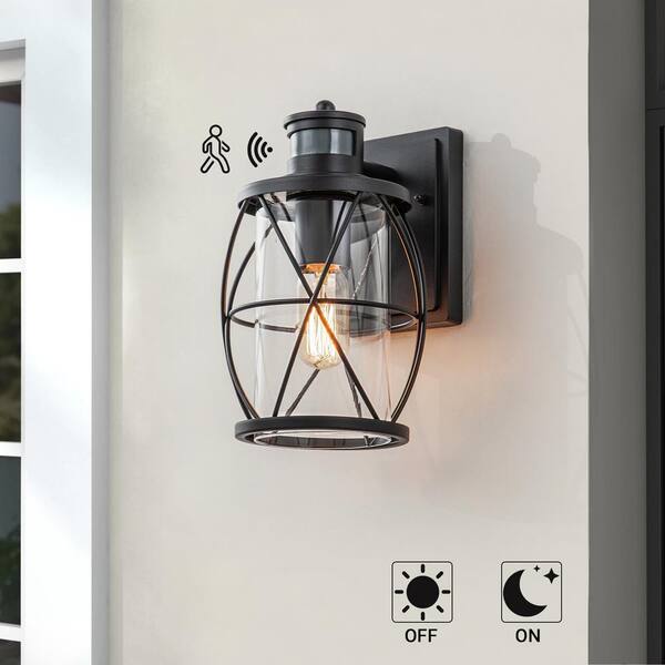 William 1-Light Black Outdoor Wall Lighting Dusk to Dawn Outdoor Wall Sconce with Clear Glass