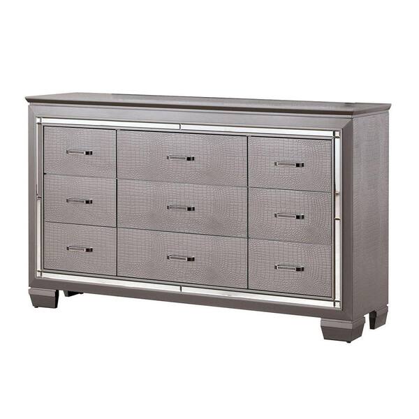 Bellanova 9 -Drawers Silver Dresser 39 in. H x 66 in. W x 17.5 in. D