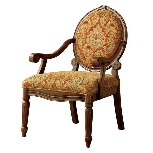 Hammond Antique Oak Ruby and Gold Fabric Arm Chair