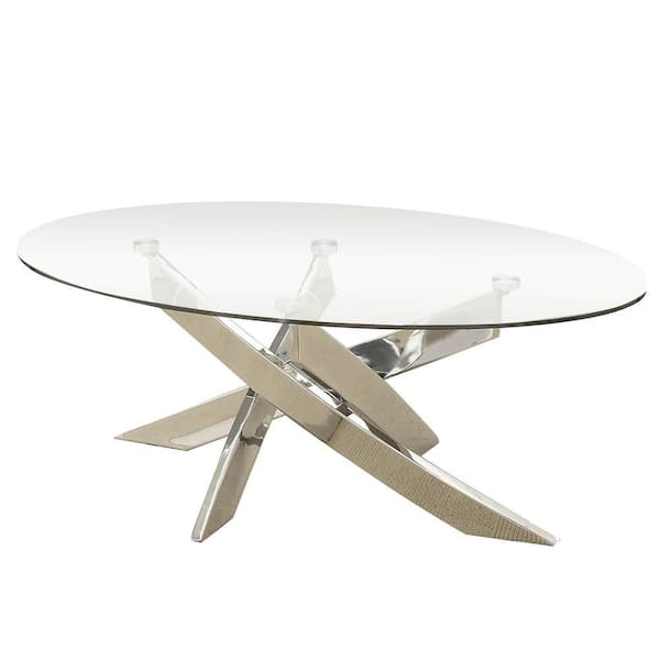 Laila 48 in. Clear/Chrome Large Oval Glass Coffee Table