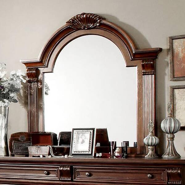 Large Arch Brown Cherry Beveled Glass Classic Mirror (45.25 in. H x 45.5 in. W)