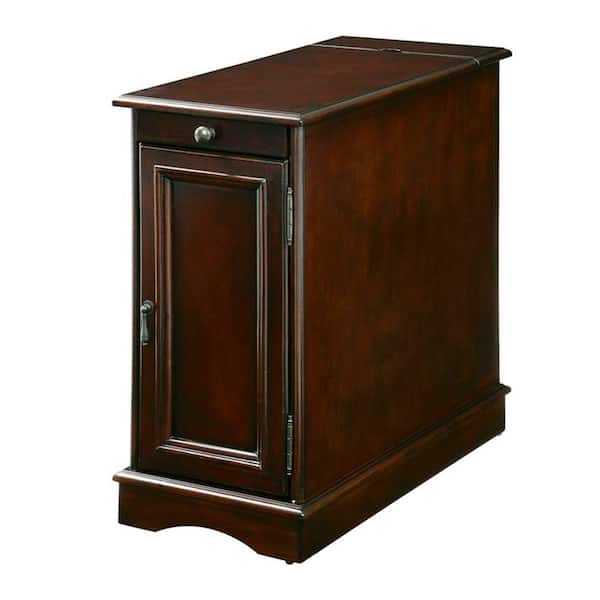 Lilith I Side Table with Built-in USB Outlet, Pull-out Cup Holder and Storage Cabinet in Cherry Finish