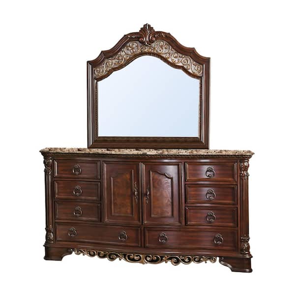 Menodora Dresser and Mirror in Brown Cherry Finish