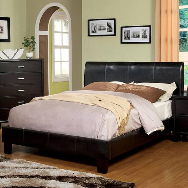 • Padded leatherette platform bed with curved headboard