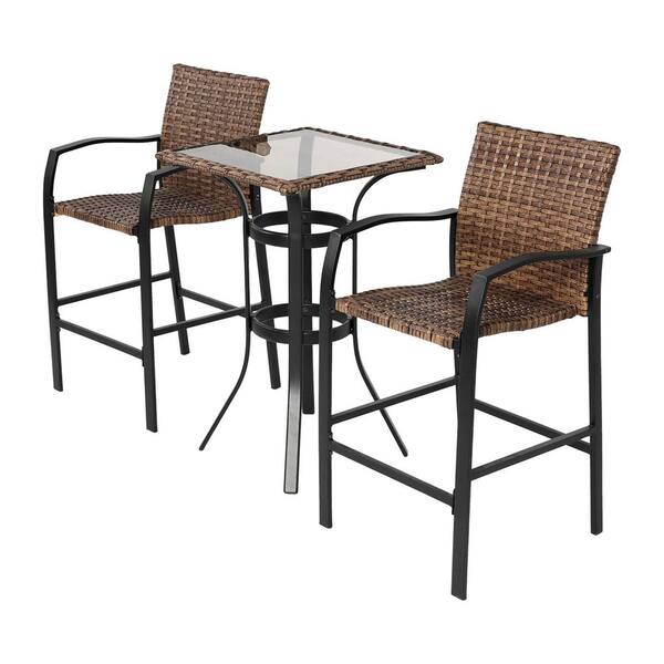 3-Piece Brown Rattan Wicker Outdoor Serving Bar Set