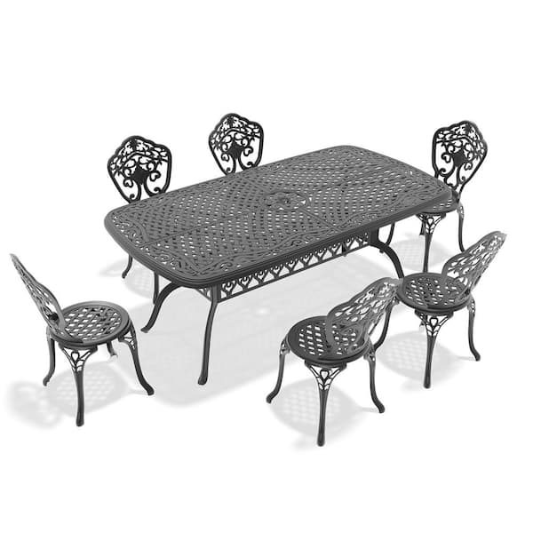 Black 7-Piece of Cast Aluminum Outdoor Patio Dining Set with 72.44 in. x 35.43 in. Rectangular Table and Armless Chairs