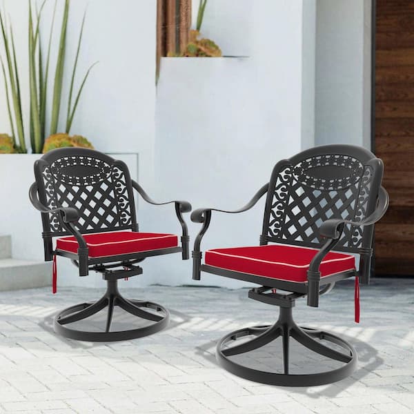 Isabella Swivel Cast Aluminum Patio Outdoor Dining Chair with Red Cushions (2-Pack)