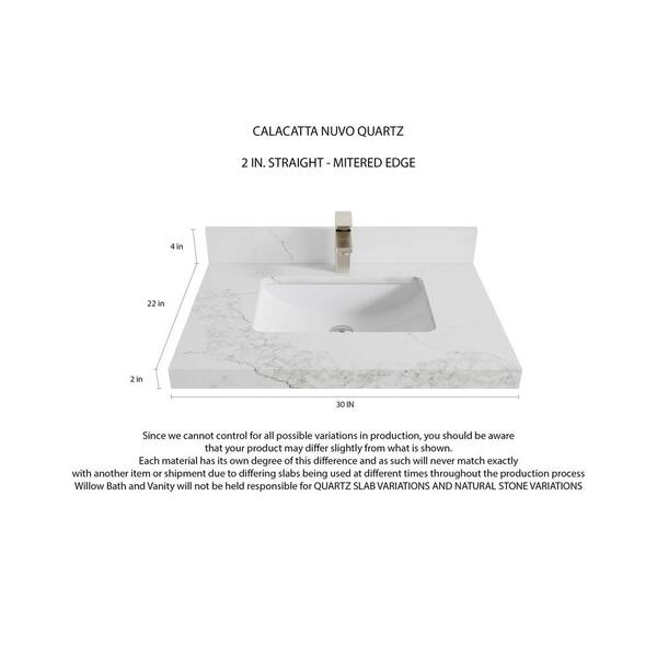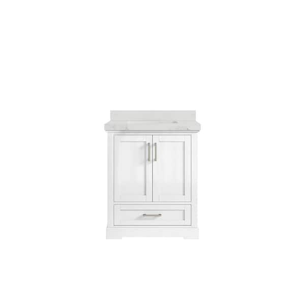 Boston 30 in. W x 22 in. D x 36 in. H Bath Vanity in White with 2" Calacatta Nuvo Top