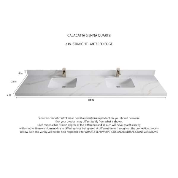 Boston 84 in. Double Sink Freestanding Evergreen Bath Vanity with Calacatta Sienna Quartz Top Unassembled