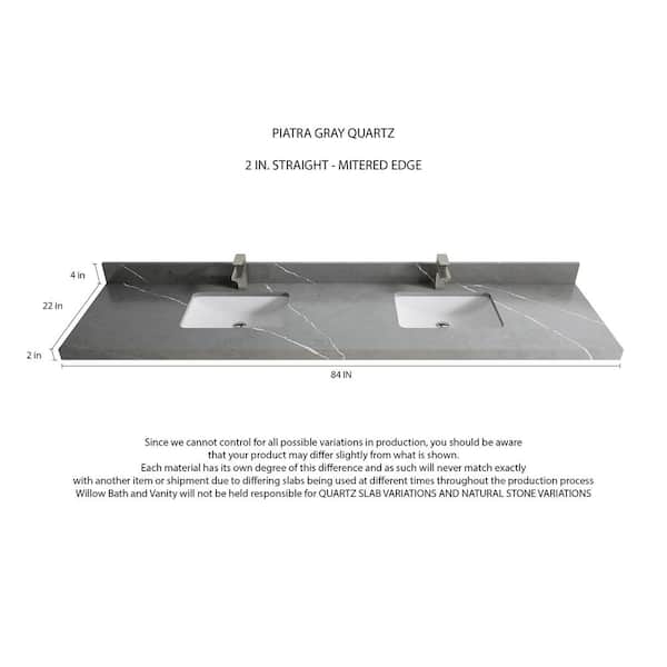Boston 84 in. W x 22 in. D x 36 in. H Double Sink Bath Vanity in Elephant Gray with 2" Piatra Quartz Top