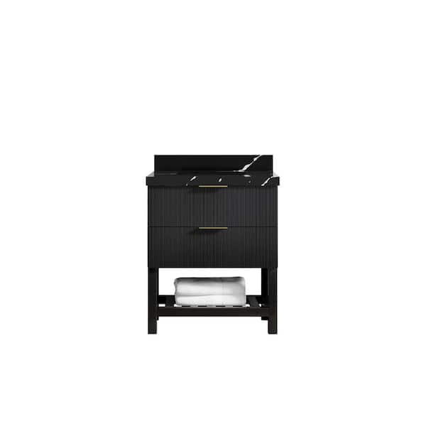 Catalina 30 in. W x 22 in. D x 36 in. H Single Sink Bath Vanity Center in Black with 2" Calacatta Black Top