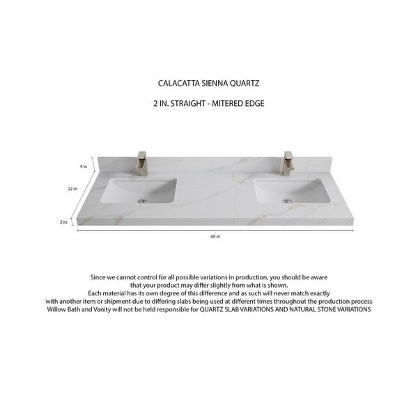Catalina 60 in. Double Sink Freestanding Pewter Green Bath Vanity with Calacatta Sienna Qt. Top Unassembled