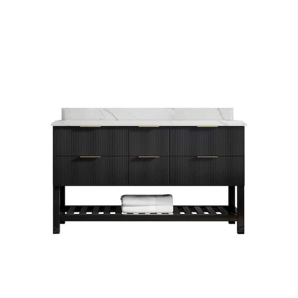 Catalina 60 in. W x 22 in. D x 36 in. H Double Sink Bath Vanity in Black with 1.5" Calacatta Quartz Top
