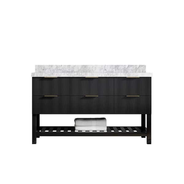 Catalina 60 in. W x 22 in. D x 36 in. H Single Sink Bath Vanity in Black with 2" Carrara Marble Top