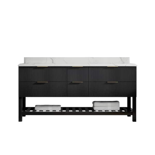 Catalina 72 in. W x 22 in. D x 36 in. H Double Sink Bath Vanity in Black with 1.5" Calacatta Quartz Top