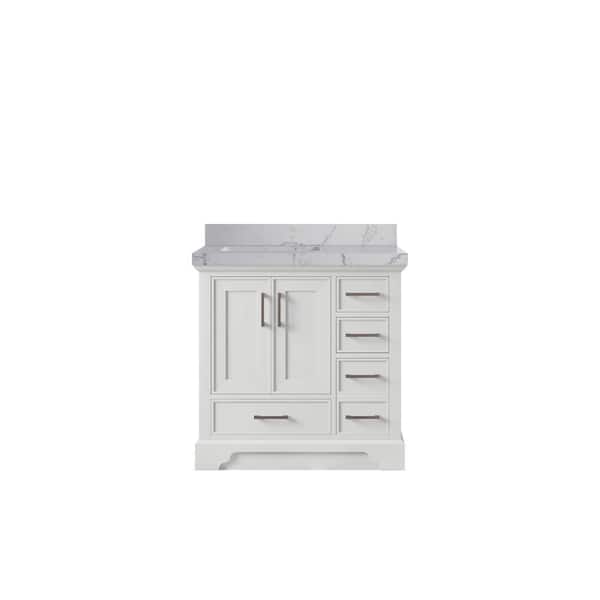 Charlotte 36 in. Left Offset Sink Freestanding White Bath Vanity with Venatino Qt. Top Unassembled