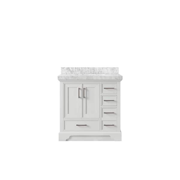 Charlotte 36 in. Single Sink Freestanding White Bath Vanity with Carrara Marble Top