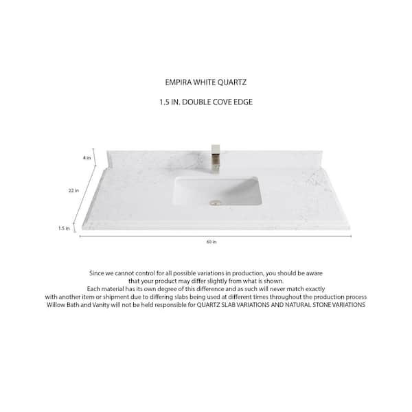 Charlotte 60 in. Single Sink Freestanding White Bath Vanity with Empira White Qt. Top Unassembled