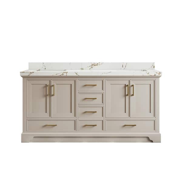 Charlotte 72 in. Double Sink Freestanding Fine Grain Bath Vanity with Viola Brown Qt. Top Unassembled