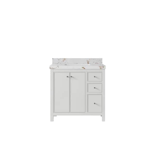 Chicago 36 in. Single Sink Freestanding White Bath Vanity with Viola Gold Qt. Top Unassembled