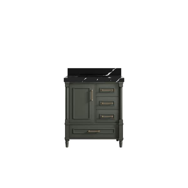 Hudson 30 in. W x 22 in. D x 36 in. H Single Sink Bath Vanity Center Pewter Green with 2 in. Calacatta Black Quartz Top