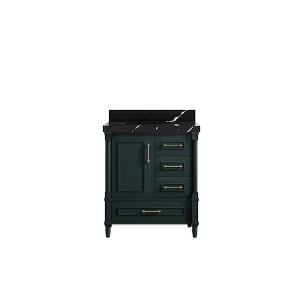 Hudson 30 in. W x 22 in. D x 36 in. H Single Sink Bath Vanity Center in Dark Green with 2 in. Calacatta Black Quartz Top