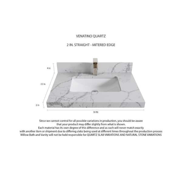 Hudson 30 in. W x 22 in. D x 36 in. H Single Sink Bath Vanity Center in White with 2 in. Venatino Quartz Top