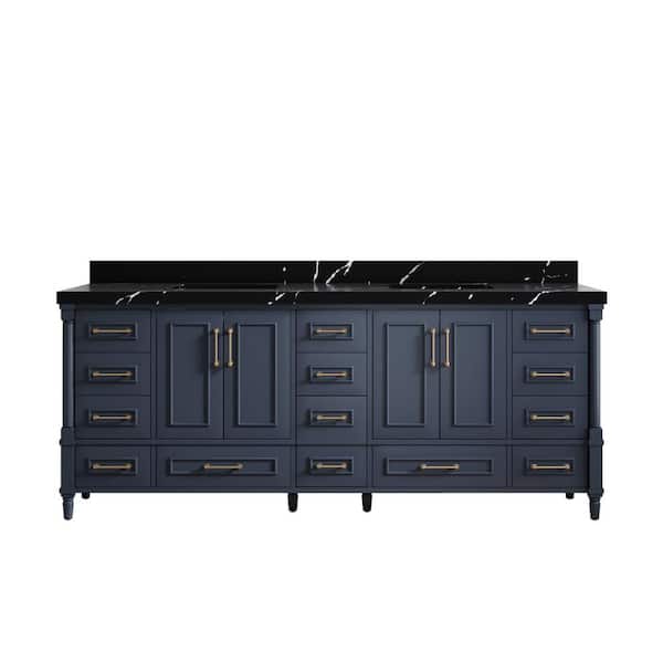 Hudson 84 in. W x 22 in. D x 36 in. H Double Sink Bath Vanity in Navy Blue with 2" Calacatta Black Top