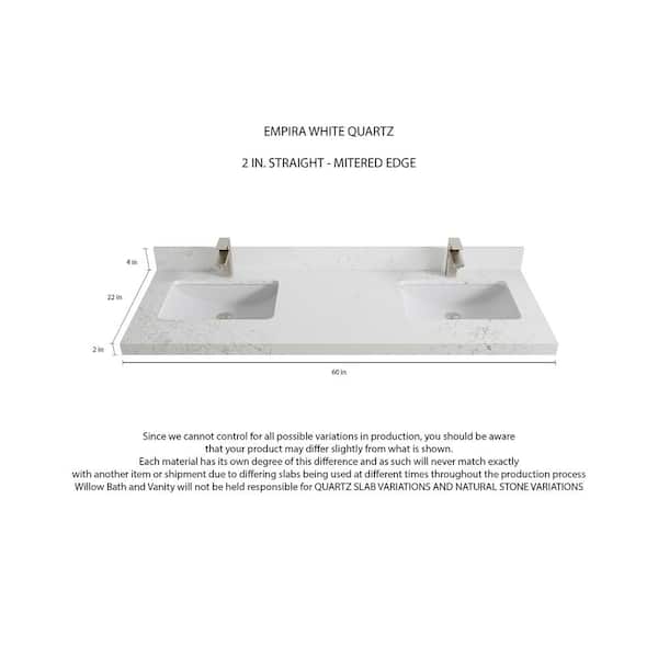 Malibu 60 in. W x 22 in. D x 36 in. H Double Sink Bath Vanity in Black with 2 in. Empira Quartz Top
