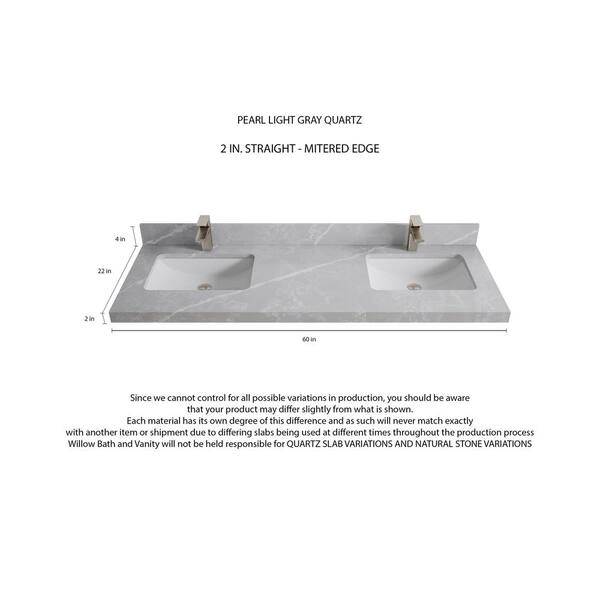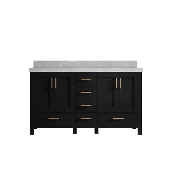Malibu 60 in. W x 22 in. D x 36 in. H Double Sink Bath Vanity in Black with 2 in. Pearl Gray Quartz Top