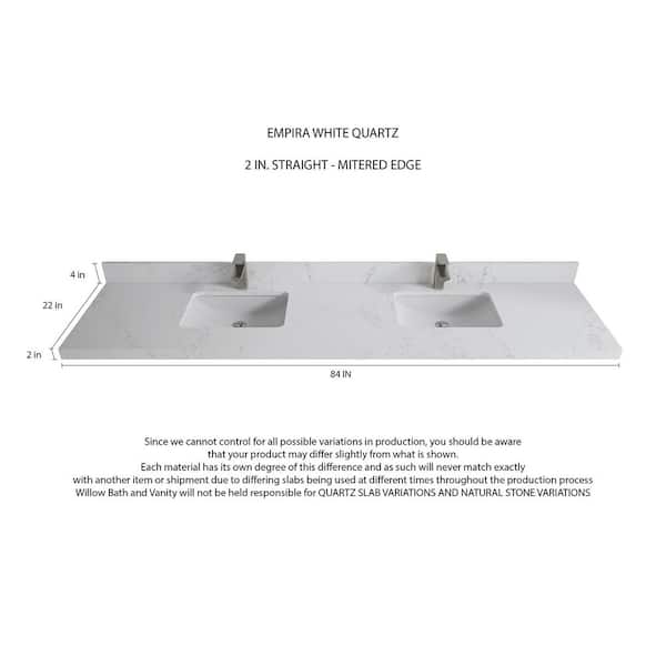 Malibu 84 in. W x 22 in. D x 36 in . H Double Sink Bath Vanity in White with 2 in Empira Quartz Top