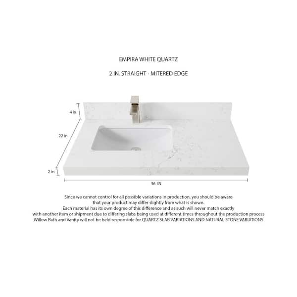 Paris 36 in. W x 22 in. D x 36 in. H Left Offset Sink Bath Vanity in White with 2 in. Empira White qt. Top