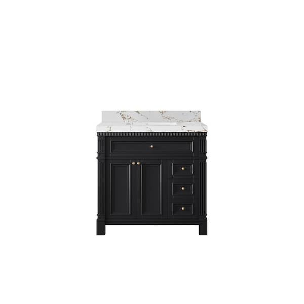 Paris 36 in. W x 22 in. D x 36 in. H Single Sink Bath Vanity Center in Black with 2 in. Viola Brown qt. Top
