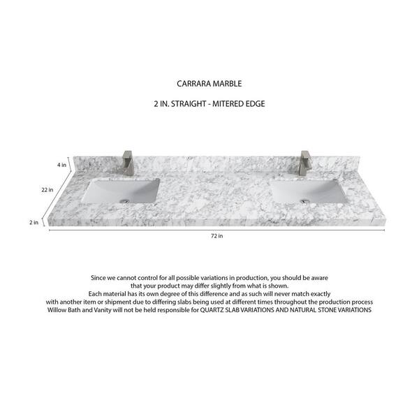 Paris 72 in. W x 22 in. D x 36 in. H Double Sink Bath Vanity in Black with 2 in. Carrara Marble Top