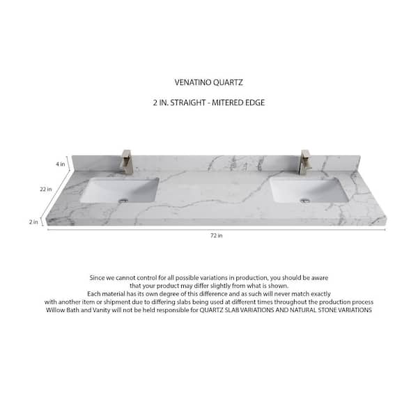Paris 72 in. W x 22 in. D x 36 in. H Double Sink Bath Vanity in White with 2 in. Venatino qt. Top
