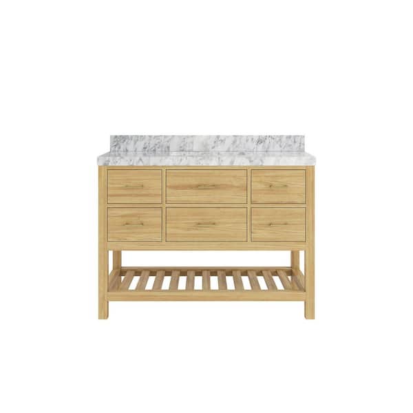 Parker Teak 48 in. Single Sink Freestanding Light Natural Bath Vanity with Carrara Marble Top