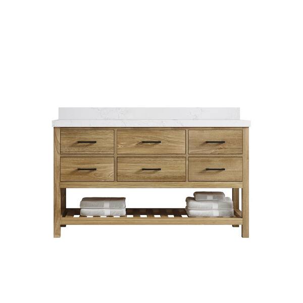 Parker Teak 60 in. W x 22 in. D x 36 in. H Single Sink Bath Vanity in Premium Polish with Empira White Quartz Top
