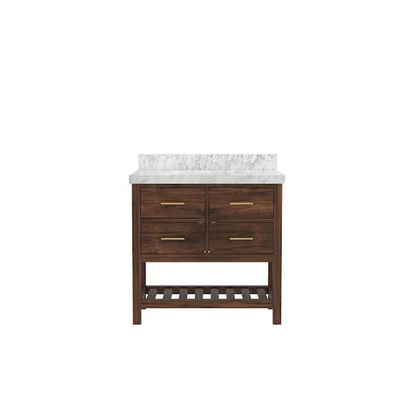 Parket Teak 36 in. W x 22 in. D x 36 in. H Single Sink Bath Vanity Center in Dark Walnut with Carrara Marble Top