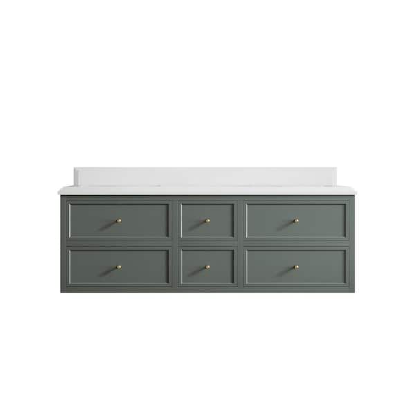 Roswell 60 in. W x 22 in. D x 36 in. H Double Sink Bath Vanity in Pewter Green with 1.5 in. White qt. Top