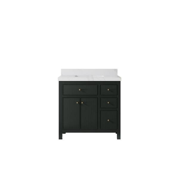 Sonoma 30 in. Single Sink Freestanding Dark Green Bath Vanity with Calacatta Sienna Quartz Top Unassembled