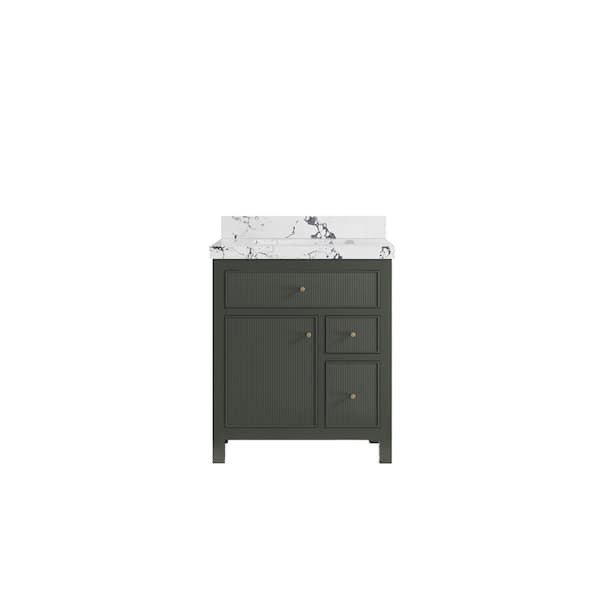 Sonoma 30 in. W x 22 in. D x 36 in. H Single Sink Bath Vanity in Pewter Green with 2 in. Viola Night Quartz Top