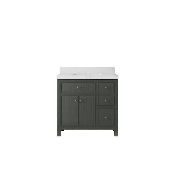 Sonoma 36 in. Single Sink Freestanding Pewter Green Bath Vanity with Calacatta Sienna Quartz Top Unassembled