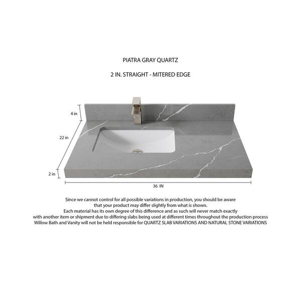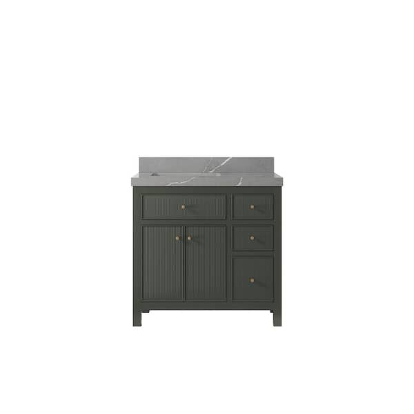 Sonoma 36 in. W x 22 in. D x 36 in. H Left Offset Sink Bath Vanity in Pewter Green with 2 in. Piatra Quartz Top