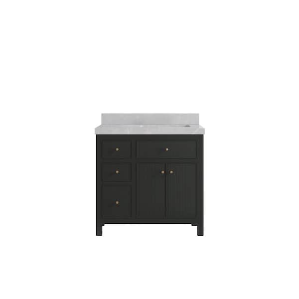 Sonoma 36 in. W x 22 in. D x 36 in. H Right Offset Sink Bath Vanity in Black Top with 2" Pearl Gray Quartz Top