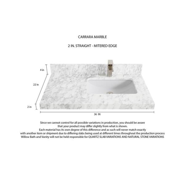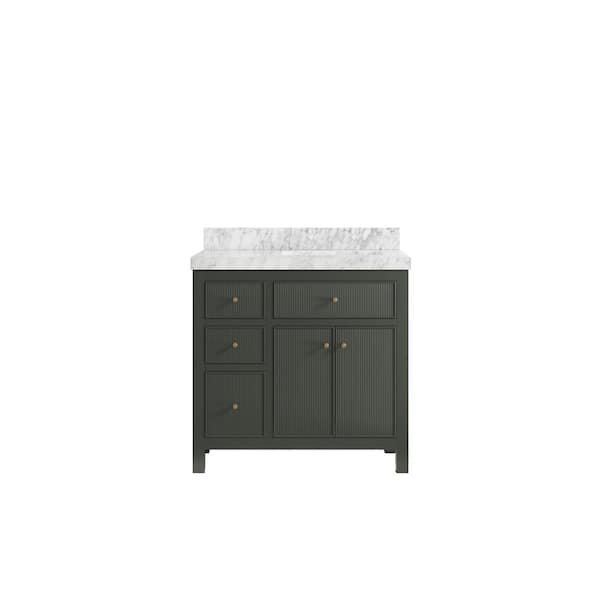 Sonoma 36 in. W x 22 in. D x 36 in. H Right Offset Sink Bath Vanity in Pewter Green with 2 in. Carrara Marble Top