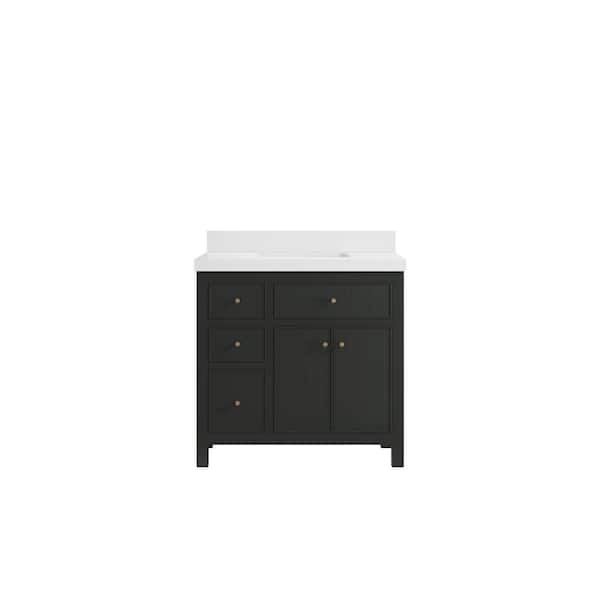 Sonoma 36 in. W x 22 in. D x 36 in. H Single Sink Bath Vanity Center in Black Top with 2" White Quartz Top