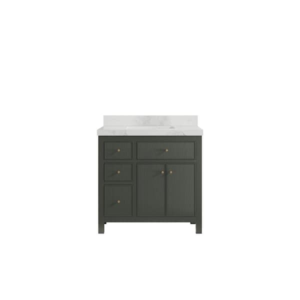 Sonoma 36 in. W x 22 in. D x 36 in. H Single Sink Bath Vanity Center in Pewter Green with 2" Calacatta Nuvo Top