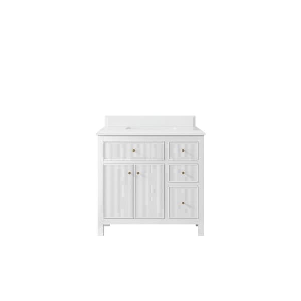 Sonoma 36 in. W x 22 in. D x 36 in. H Single Sink Bath Vanity Center in White with 1.5" White Quartz Top